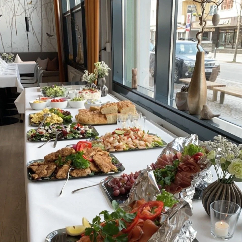 Koldtbordet vårt byr på eit utval av klassiske rettar som svinekam med heimelaga surkål, røykelaks med eggerøre og pannert kylling, samt eit rikt tilbehør av salatar, potetsalat og ferskt brød.